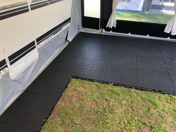 Hält man sich viel in seinem Vorzelt auf, so ist es angenehm, wenn der Boden eben ist und der Teppich glatt liegt. IsabellaFloor bietet zahlreiche Vorteile. Er ist ohne Werkzeuge leicht auszulegen, da die Elemente mit Verschlusszapfen und wie ein Stecksystem ineinander gesteckt werden. Er ist leicht aufzubewahren und hat eine hohe Lebensdauer. IsabellaFloor hat außerdem den Vorzug, dass man Schrägen und Eckschrägen zukaufen kann. Das ergibt nicht nur ein ansprechendes Finish, sondern ist auch praktisch z. B. für Rollstuhlfahrer und Familien mit Kinderwagen.