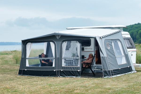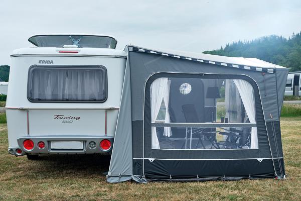 Eriba Touring -etuteltan avulla saat matkailuvaunuusi suuren oleskelutilan, joka on suunniteltu toiminnallisuutta ja yksityiskohtia ajatellen. Teltta on suunniteltu siten, että asuntovaunun ovi voi avautua kokonaan. Integroitu kattotyyny varmistaa, että teltta asettuu tiiviisti matkailuvaunua vasten ja johtaa siten veden pois.