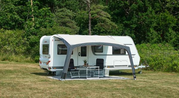 For at du skal få le ved campingvognen, kan du kjøpe en side til Arc-solseilet. Siden er laget av akryl med et stort vindu og kan brukes på både høyre og venstre side av solseilet.