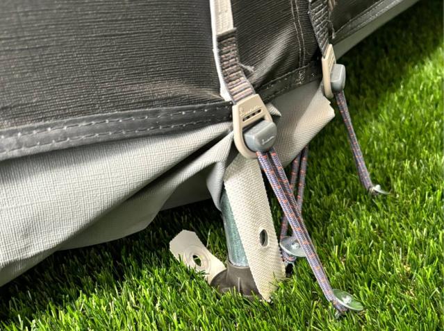 The adjustment straps in the corners of the awning help you adjust the distance to the ground and tension your awning correctly. These adjustment straps ensure tight tensioning - even on uneven terrain.