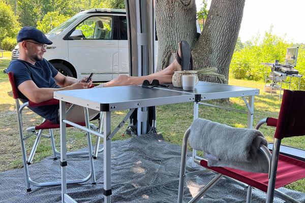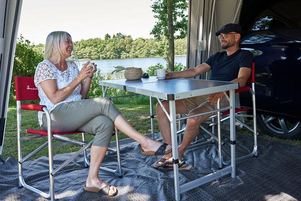 Experience the new and improved Isabella director’s chair, now delivered with a detachable side table. This clever table can be placed on either side of the chair and supports a load of up to 5 kg – perfect for your drinks, snacks and sunglasses.