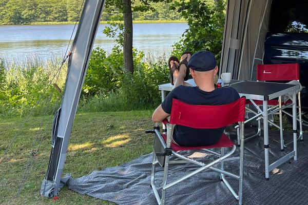 The improved armrests provide extra comfort so you can relax while sitting outdoors. The director’s chair is easy to transport, weighing just 3.28 kg. It takes only seconds to unfold and fold the chair. Perfect for camping, fishing trips or use in the garden at home.