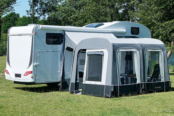 The tunnel is necessary to ensure a tight and correct connection between Vita and your vehicle. The adjustable tunnel has tapes that create a tight connection to prevent water ingress. The rear wall of the awning can be rolled to the side for easy access to the tunnel.